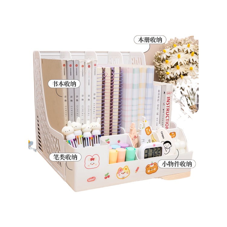 Elegant white fourcolumn book stand ins largecapacity file column stationery pen holder